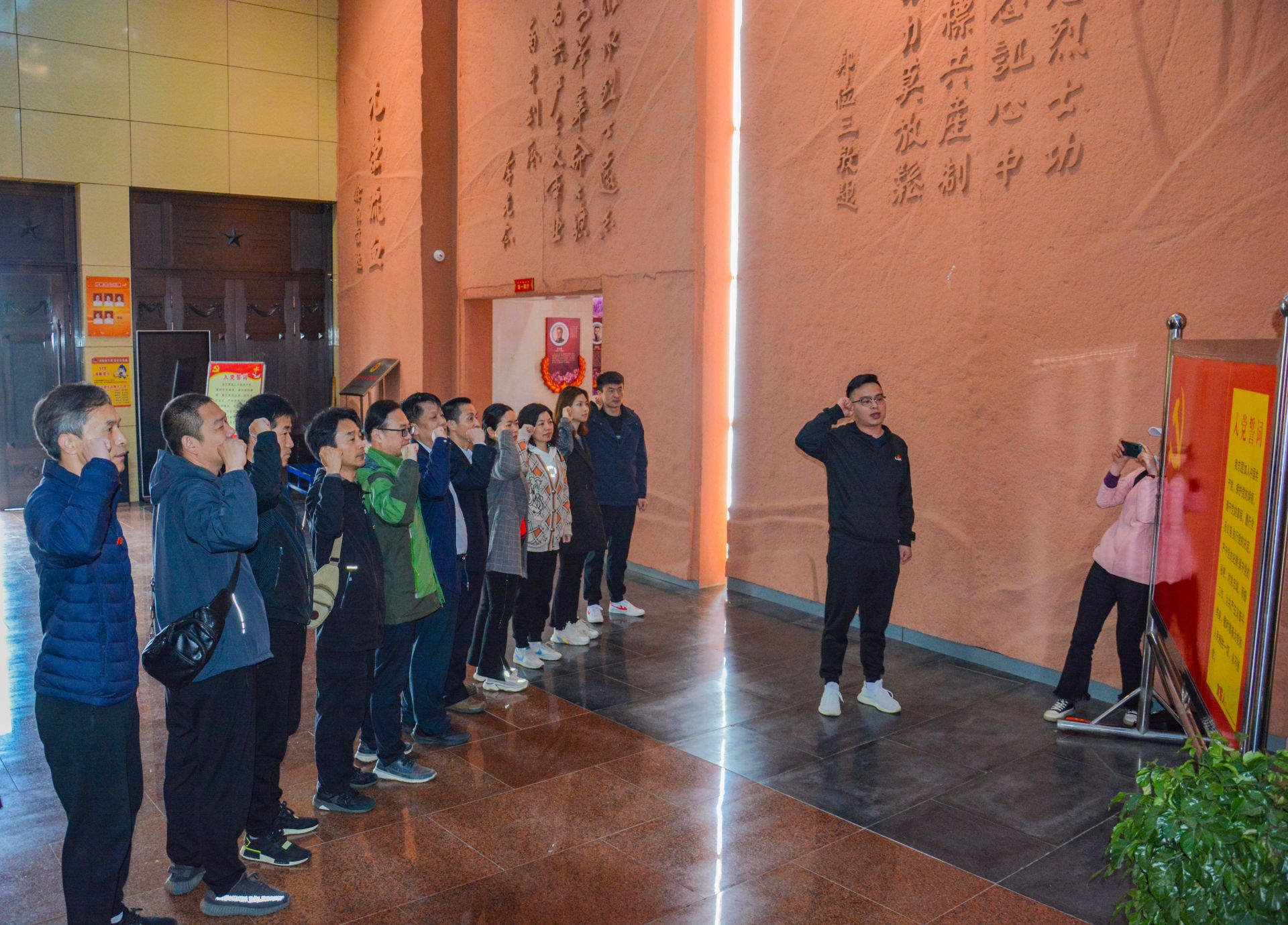 云梦县政数局党员干部参观的革命烈士纪念馆是全国爱国主义教育示范基地。纪念馆主要展示了李先念、徐向前、王震、徐海东、刘华清、任质斌等老一辈无产阶级革命家的光辉足迹。全体党员面对党旗,举起右拳,重温入党誓词。当天下午,全体党员还参观了徐海东大将军的故居。
