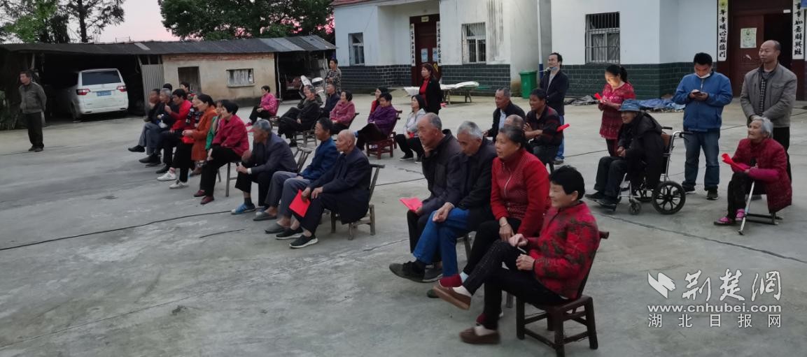荆楚网(湖北日报网)讯(通讯员左喜银)4月28日晚,孝南区朱湖办事处协和二生产队与驻村扶贫工作队联合组织了一场以“观红色电影,学百年党史”为主题的红色影片展播活动,为该村四十余名党员、群众送上了家门口的视觉盛宴。