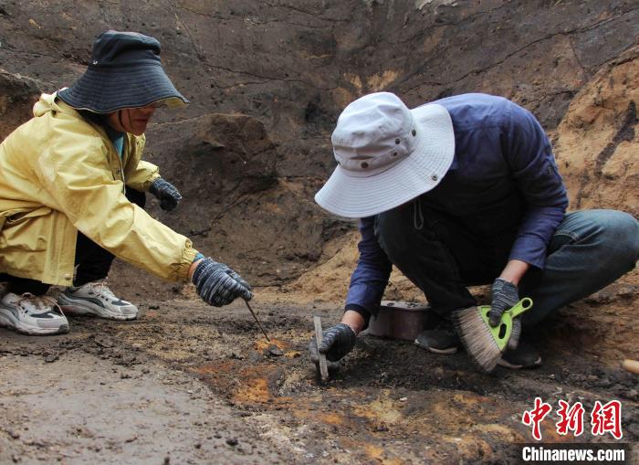 资料图:探访山东菏泽汉墓群,考古人员正在现场用手铲、刷子发掘清理人骨等遗物。 赵晓 摄