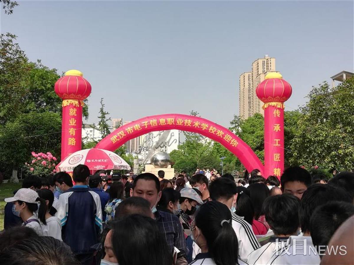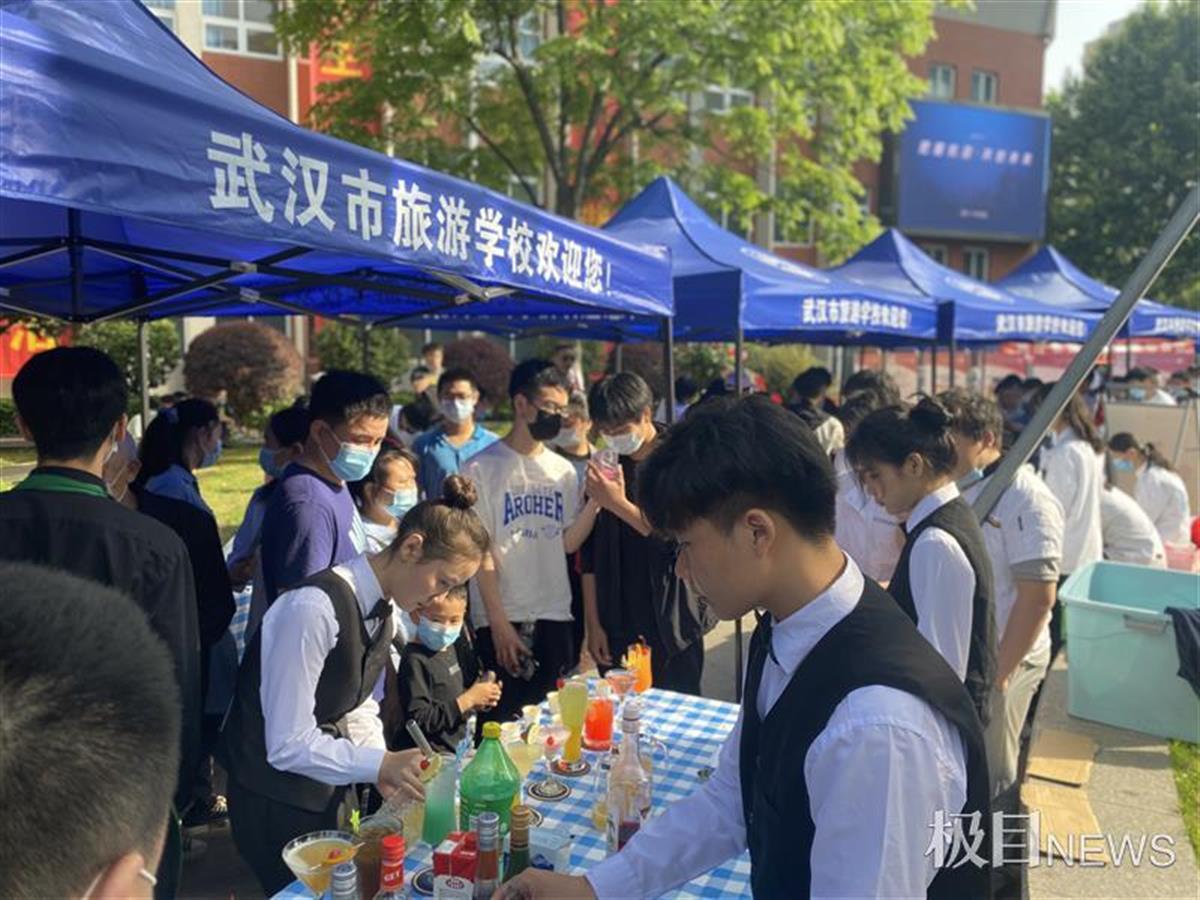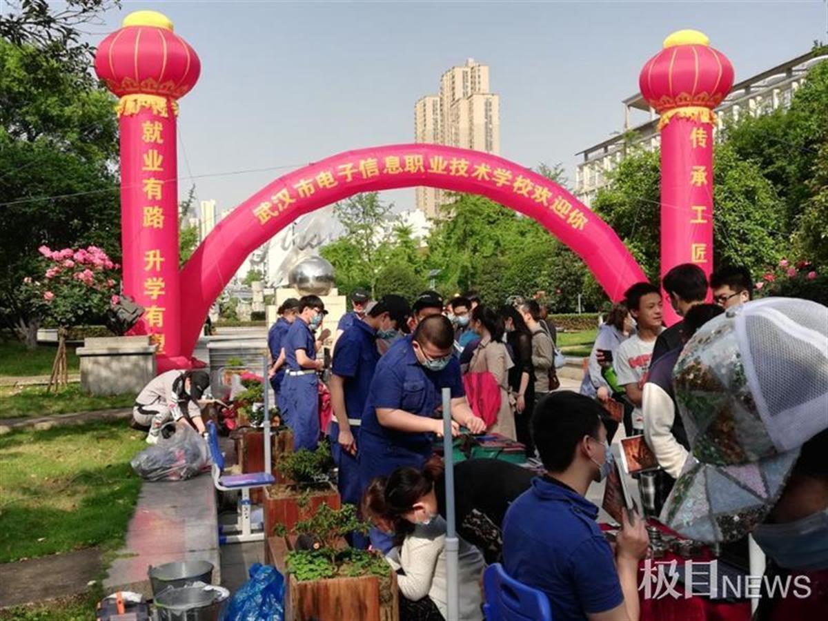 5月1日,武汉市江汉区中招咨询会在武汉一中举行。极目新闻记者在现场发现,不少初中毕业生和家长来武汉市电子信息职业技术学校和武汉市旅游学校的咨询台前,了解中职招生的信息。同时,学校里各专业的学生们秀出“十八般武艺”,展示学生们的专业技能。“读中职能不能考本科?”3+2升学班和技能高考班有哪些区别?“不少家长对技能高考班的升学情况特别感兴趣。