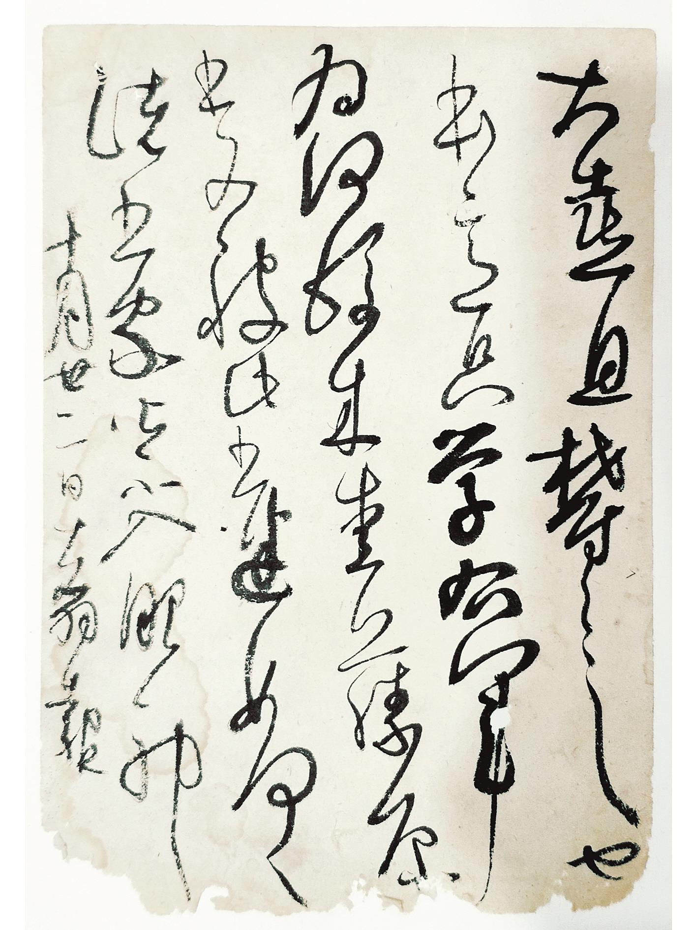 草书。释文:大喜且郁郁也。本意只学右军,为何后来爱藤原书,又被此书迷,如何如何?诸书家皆不入眼耶。十月廿二日子翥报。