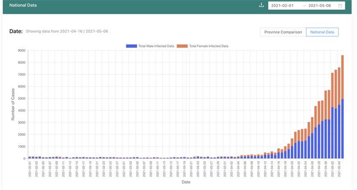 尼泊尔国内单日新增确认新冠人数(来源:尼泊尔政府官网)