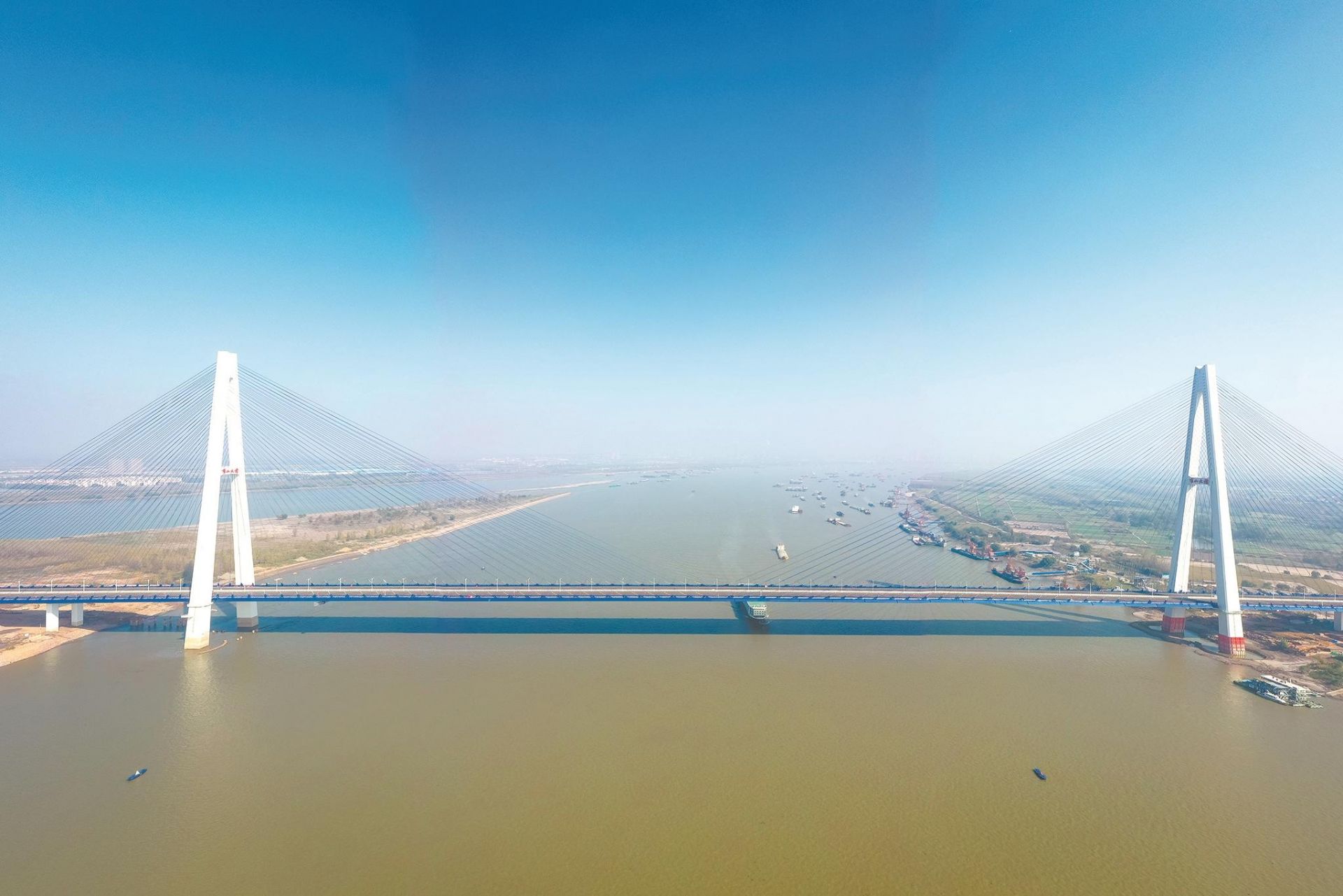 大桥建设中,中铁大桥局首创大直径变截面旋挖钻深水基础施工工艺,仅用83天就完成60根钻深113米的主塔桩基施工,攻克了世界最大哑铃型双壁钢围堰施工中的一系列技术难题,为同类型施工积累了宝贵经验。