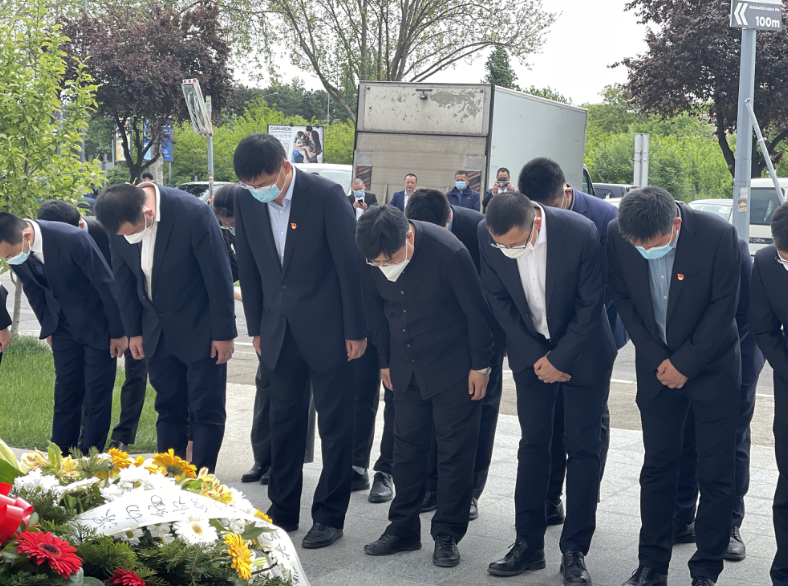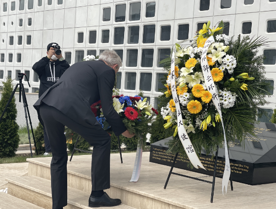 在中国驻南斯拉夫联盟被炸使馆旧址前