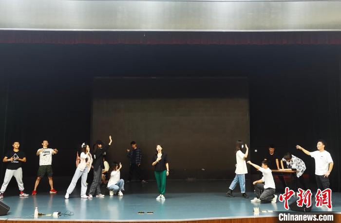 图为秦萩玥(中)参与木洞山歌音乐剧排练。 受访者供图