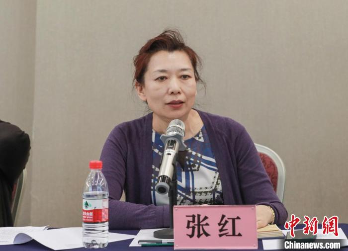 图为北京市文联副主席、北京杂技家协会主席张红发言。 中新社记者 贾天勇 摄
