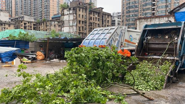 当天,武汉市城管执法委共组织3000余名城管执法人员和1.2万余名环卫工人,出动400余台次垃圾收运车辆,抓紧清扫道路废弃物,清理排水口周边垃圾3000余处,道路枯枝落叶等废弃物近600余吨。各区城管部门应急处置井盖问题 97处,应急处置架空管线垮落问题17处,应急处置围挡倾倒16处,扶正倾倒护栏2000余米,调度管线单位修复歪倒线杆8根、拆除歪斜信号塔1处。