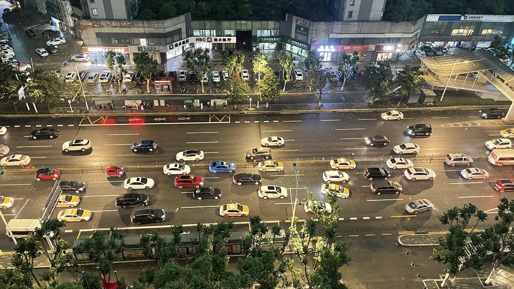 当时记者蹚着齐小腿深的渍水采访的这个点位,现在交通一路畅通,车辆无阻。在路口“锅底”的位置,也仅有未过脚踝的浅层积水,正随着数个路边的井盖排口迅速排走。