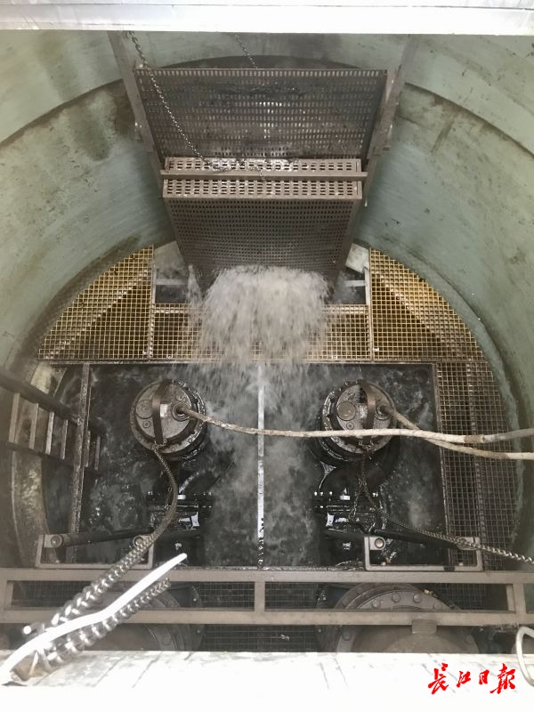 10日16时许,武昌区友谊大道长江隧道口上空仍飘着小雨,但路面上并无渍水,来往车辆畅行无阻。由于水流量高峰已过,现场工作人员将一体化泵站的运行模式由手动变为自动,同时工作的泵机运行数量由4台减少为2台。