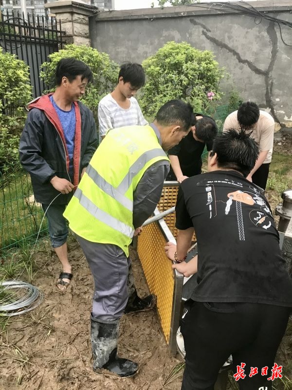 蔡甸经济开发区综合执法队队长宋旭东告诉长江日报记者,该小区位于黄星大道与常福大道交会处,地势低洼,容易渍水,看到暴雨倾盆,他和同事第一时间赶到现场。因为雨势太猛,他发现路面出现倒灌现象,“水像个喷泉往上涌,根据我的经验,那是井盖子被冲出来了。”将下水道围上警示桩后,宋旭东和同事很快找到被冲走的窨井盖,等雨势稍小再装回去。“我们一直在抢险,已经修复了四五个井盖。”