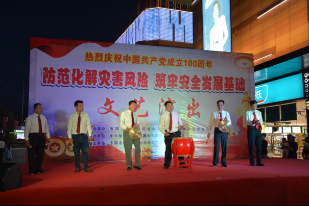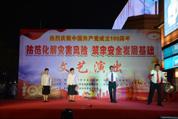今年5月12日是第13个全国防灾减灾日,主题是“防范化解灾害风险,筑牢安全发展基础”。为切实做好“5·12全国防灾减灾日”宣传教育工作,广泛普及防灾减灾知识,提升灾害防范应对能力,向建党100周年献礼。近日,安陆市减灾委办公室、市应急管理局联合中央储备粮孝感直属库有限公司、安陆市老年艺术团及减灾委有关成员单位,在东大时代广场前举办一场别开生面的防灾减灾文艺演出。