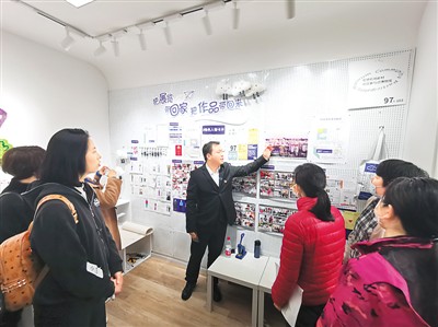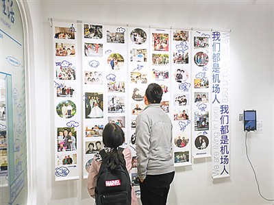 一栋二层小白楼,门前的地上喷涂着白色的飞机图案,旁边的橱窗里,空姐、地勤、飞机维修工程师等卡通形象吸引了不少来访者的目光。上海虹桥机场新村居民区党总支书记曹欣礼指着一个管理人员的卡通形象对叶柏根说:“看!像不像年轻时候的你?”退休政工师叶老伯嘿嘿一笑:没想到这里的每个卡通人物,竟然就是我们自己。