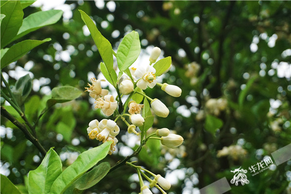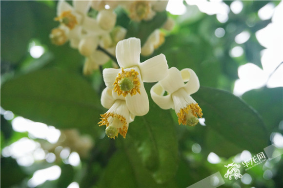洁白淡雅的柚花清香扑鼻。华龙网供图