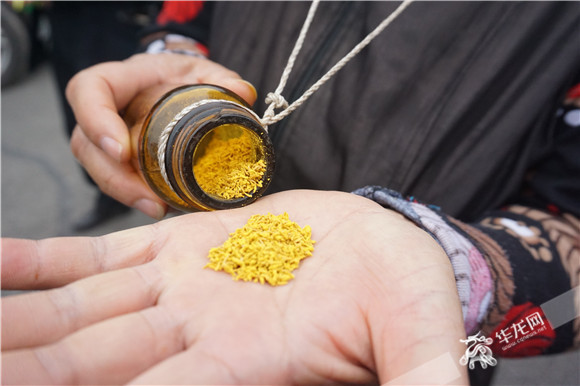 果农向记者展示授粉“原料”。华龙网供图