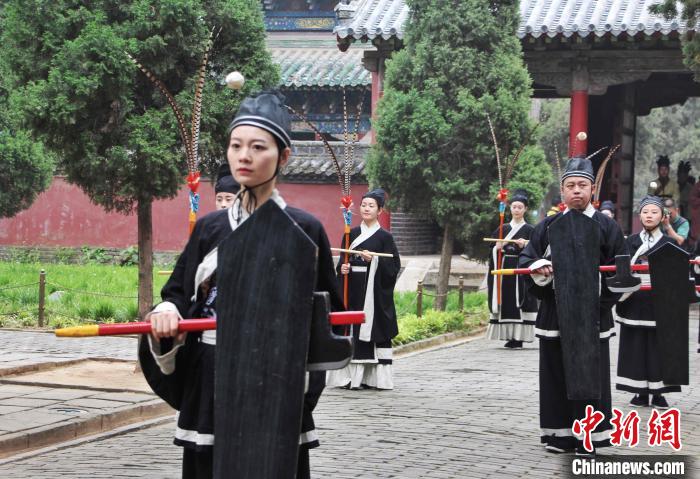 孟氏后裔和各界人士在文舞生、武舞生的引导下,端重步入亚圣殿前。 赵晓 摄