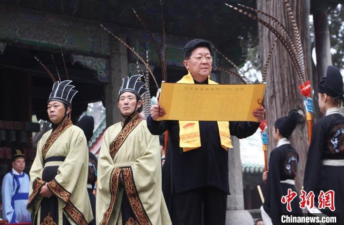 孟子第73代孙、孟子文化委员会会长孟晓苏在现场恭读祝文。 赵晓 摄