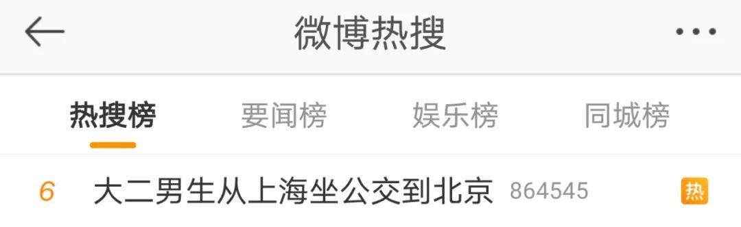 今天,“大二男生从上海坐公交到北京”的话题冲上热搜,引发热议。