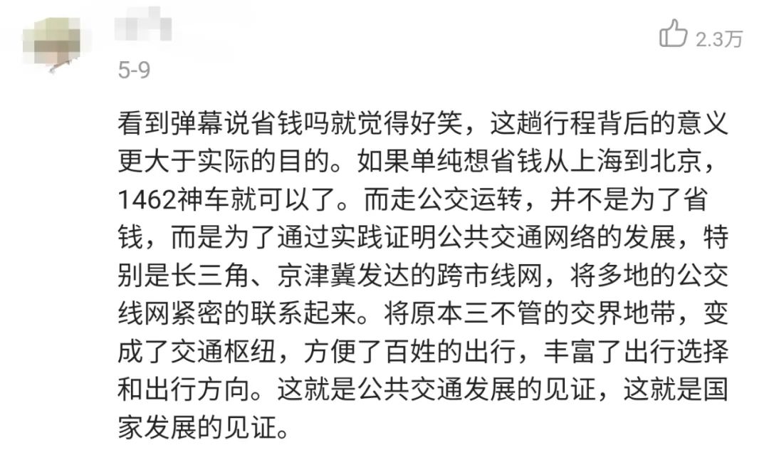 上海高校大二学生唐同学耗时6天5夜,跨越1810公里,乘坐1291站公交从上海抵达北京,车费共计381元。