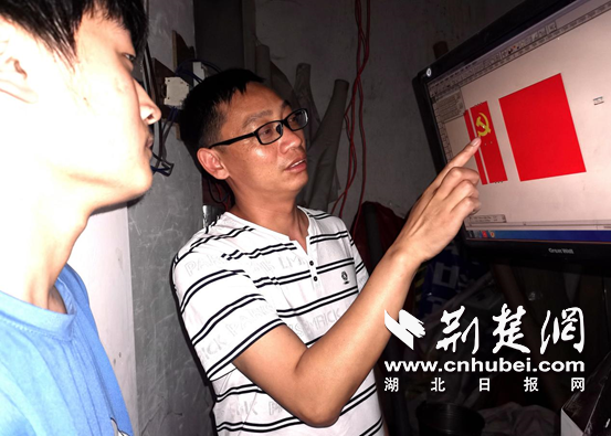 重约500斤的巨幅党旗,喷绘耗时10小时,所用油墨1.2千克。孔少辉 摄