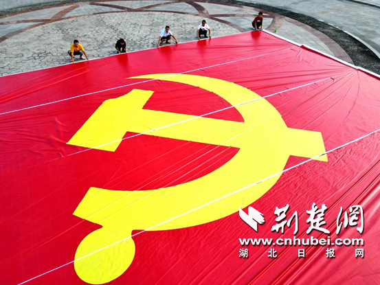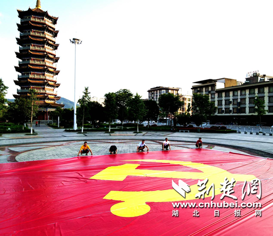 荆楚网(湖北日报网)讯(记者邱玲鹏 实习生顾思远 通讯员刘明 孔少辉)为迎接中国共产党建党100周年,继承和发扬老一辈革命艺术家的伟大革命精神,5月15日,一面史上最大的巨幅党旗在通城雁塔广场拼接试展,即日将亮相该县隽水初级中学。