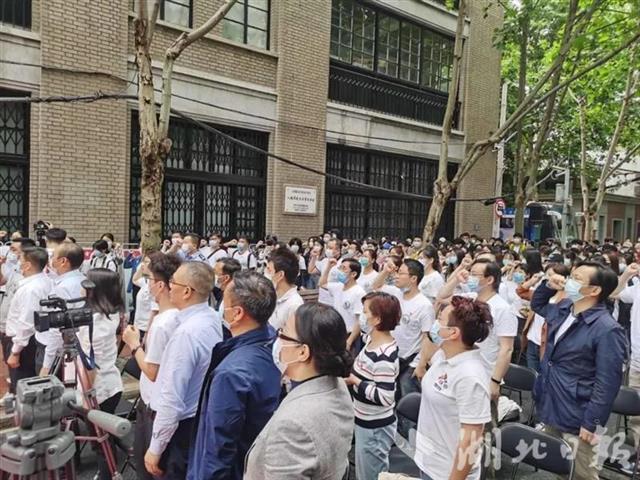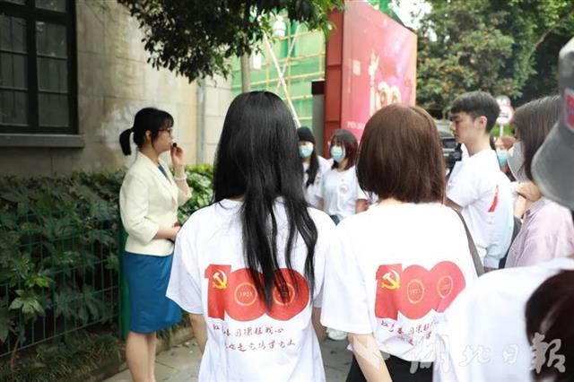 当天,中国地质大学(武汉)约300名大学生前来参加活动,大家在八路军武汉办事处旧址纪念馆馆长袁琳带领下,重温入党誓词,随后分为五路参观、打卡抗战遗址。