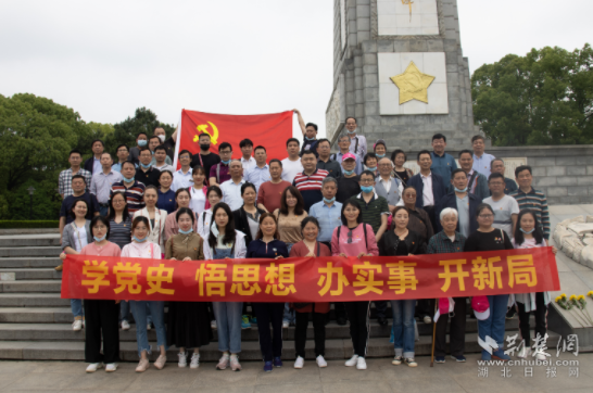 全体党员干部首先来到黄麻起义和鄂豫皖苏区革命烈士纪念碑前,面对党旗,重温入党誓词。