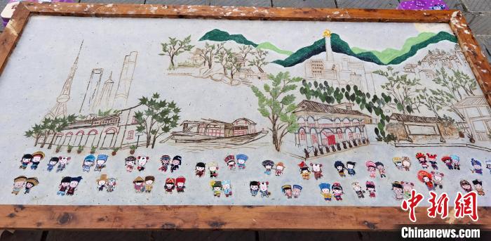 图为张胜迪和团队创作的构皮纸画。 周燕玲 摄
