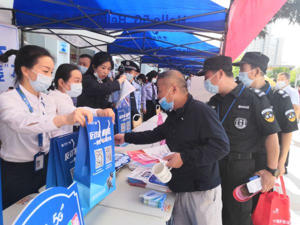 洪山广场的活动现场,通过宣传展板、宣传视频,工作人员讲解以及公安民警答疑等,向群众宣传公安机关打击整治盗窃、破坏“三电”设施和打击通讯信息诈骗犯罪的典型案例,讲授“三电”保护和防电诈相关知识。