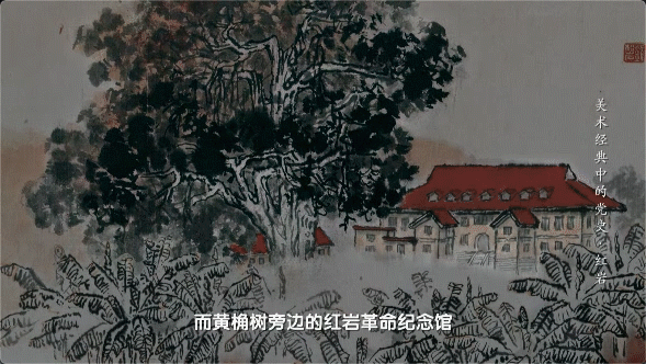 而黄桷树旁边的红岩革命纪念馆,是整幅画作的核心,起到了点题的作用。