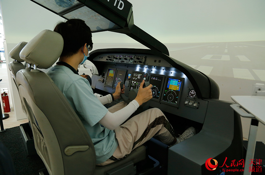 可体验的国产支线ARJ21-700飞机飞行训练器。人民网 陶建摄