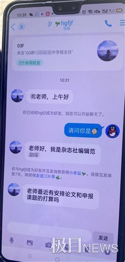 就在发出通知后不久,群里某班主任老师便反映自己收到了同样的好友申请,骗子留言“老师好”,以为是学生家长的该老师没多想便同意了好友添加,谁知这个范某某热情地打了招呼后,便开始询问该班主任老师“最近有安排论文和申报课题的打算么?”幸好及时收到学校中层干部的提醒,该班主任老师随即拉黑范某某,避免其进一步动作。