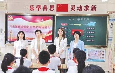“多学科融合讲党史、在不同科目教学中贯穿思政教育,在万松园路小学并不少见。”该校副校长吴琪介绍,学校积极响应江汉区创新学习模式,围绕“四史”教育学习内容,在多学科参与、多角度切入的主题学习设计中,引领学生重拾峥嵘岁月记忆,共温革命历史情怀,树立奋发图强的爱国志向。