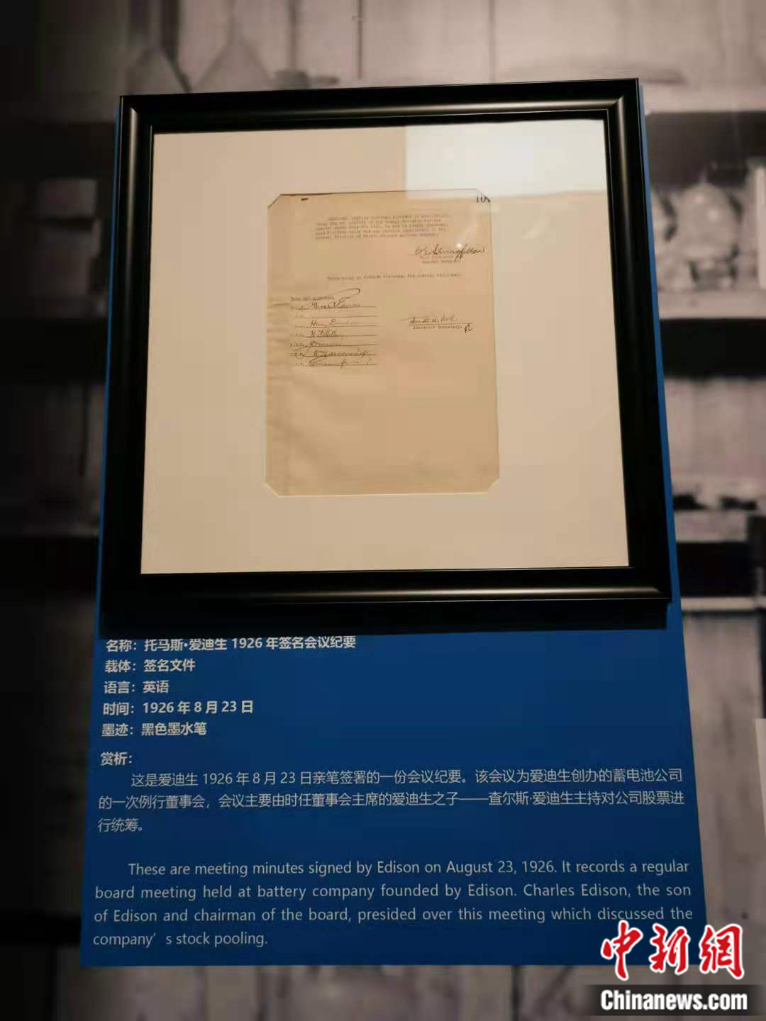 多年后,查尔斯·爱迪生接班成为公司的新董事长,在后期的会议纪要中,他的签名就会位于第一行,而父亲已退居其后,手迹的背后,体现的是两代人的传承。