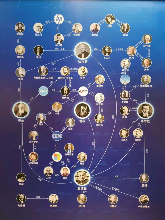 走进“光电之迹”展览,目光首先会被一张巨大的人物谱系图所吸引。