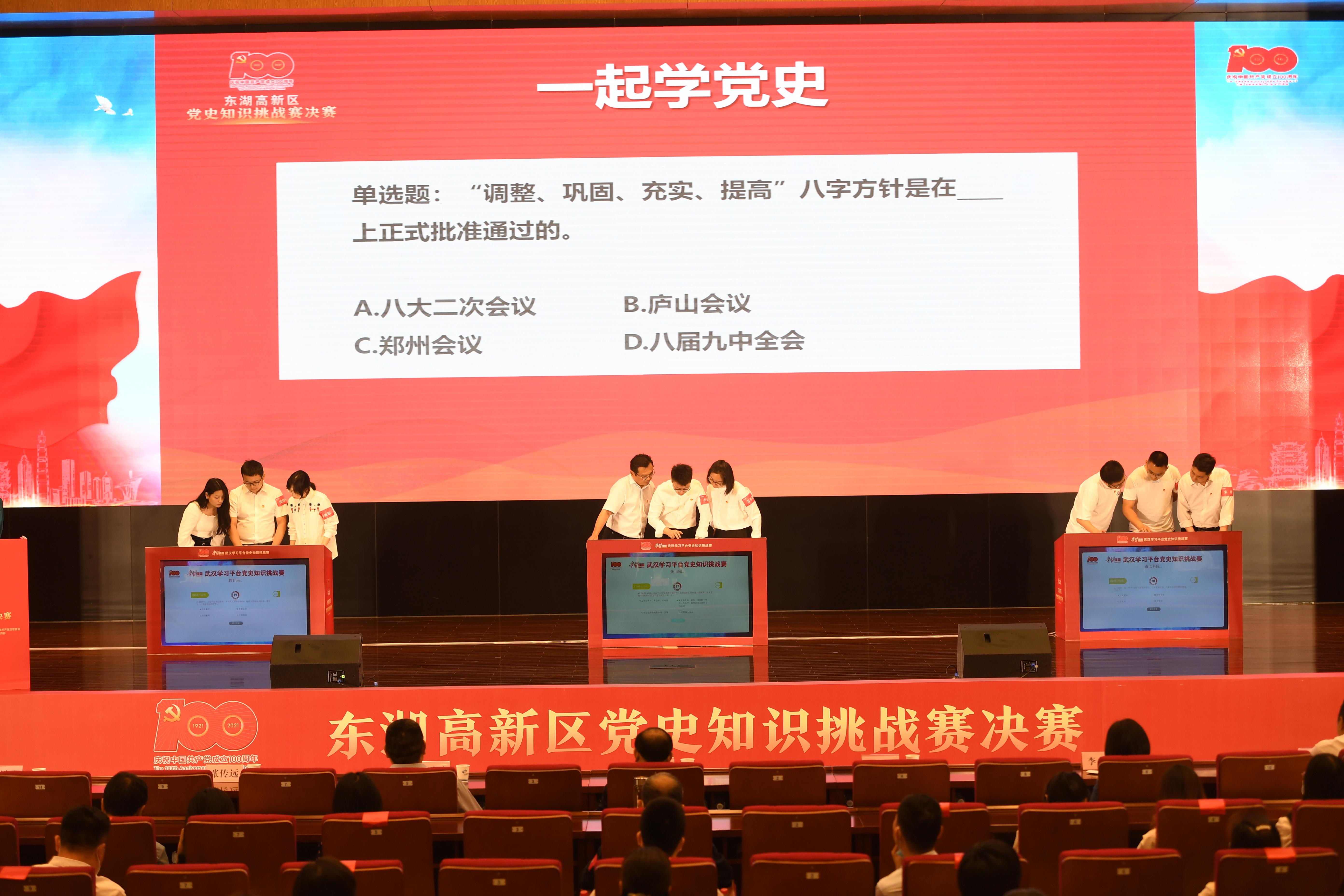 长江日报-长江网5月21日讯(记者余淮)东湖高新区党史知识挑战赛决赛今天下午在光谷公共服务中心举行。在之前进行的“学习强国”武汉学习平台党史知识挑战赛中,个人总积分位居东湖高新区第一的韩尚蒙,与队友秦天明、江桂芳一道,稳定发挥,为其所在的东湖高新区纪工委队取得二等奖,队友秦天明获得优秀个人奖第一名。