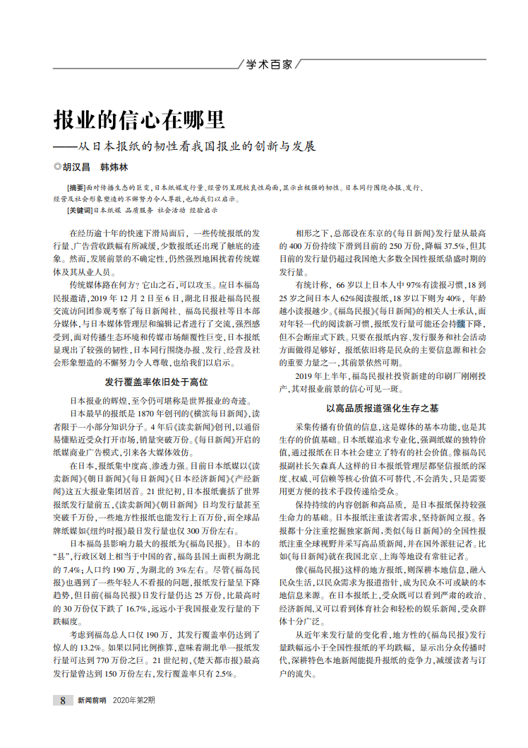 附件2:《报业的信心在哪里——从日本报纸的韧性看我国报业的创新与发展》新闻论文刊播版面截图