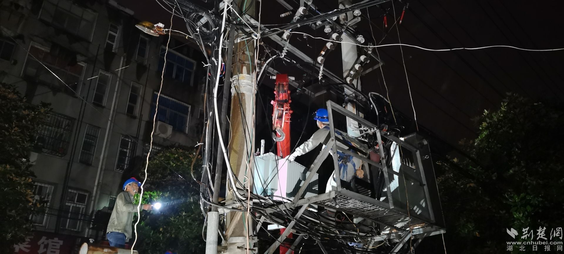 荆楚网(湖北日报网)讯(通讯员程国辉、何博)5月22日17时,应城市供电公司供电人员在巡视线路时发现,该市西大街1号公共变压器出现冒油现象,遂决定采取零点抢修方式更换变压器。