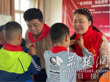 少先队代表为参与活动嘉宾系上了鲜艳的红领巾。通讯员供图