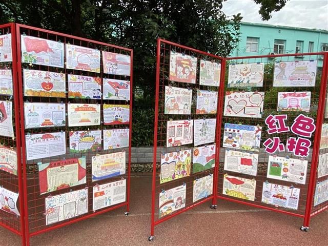 同时,学校利用各类教学场所,通过广播、宣传栏等,将红色元素融入校园,让学生在潜移默化中时时刻刻能吸收到红色文化精神,达到更好的党史学习教育效果。