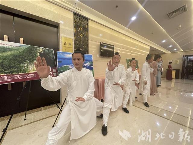 在“洪湖水浪打浪”的优美旋律中,湖北宜昌、十堰、咸宁、恩施和神农架林区等5地,宜昌三峡人家景区、十堰丹江口大坝景区、咸宁九宫山、恩施大峡谷等4个景区作为代表进行了文旅推介。世代传唱的《龙船调》,名震天下的武当功夫《天下太极出武当》,还有展示楚文化的歌舞《楚韵》,让现场观众身未动、心已远。北京中国国际旅行社副总经理薛宏文说:“参加这个推介会,让我对湖北有了更深入的了解,包括湖北文化和资源。我们准备和中国国旅武汉公司签约,紧密合作,多给湖北送客。我自己也想去湖北,看看樱花,打卡黄鹤楼。”