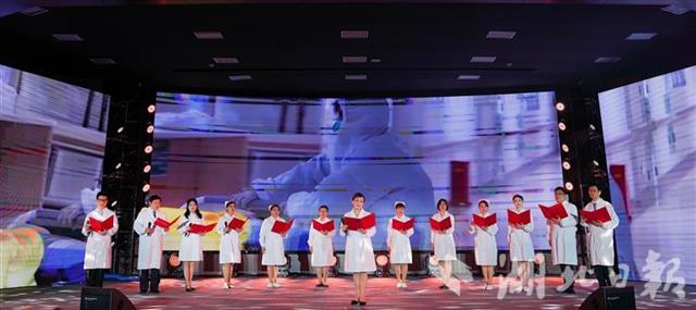 当日,“风雨百年路·群英百人颂”大型音乐朗诵展演在武汉东湖学院举行,约200位师生以现代舞剧、情景剧、朗诵、歌舞和合唱等形式,从嘉兴南湖上的一条小船讲起,将百年党史浓缩为12个鲜活生动的历史瞬间,给观众带来了一场精神盛宴。