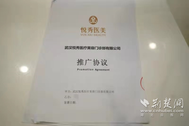 很快,民警联系了山东姑娘晓洁(化名)。去年8月,她曾到悦秀医院美容。她向民警介绍,当时,在一个礼仪车模群里看到网友“小Q”发的广告,推荐武汉悦秀医院的优惠活动。“小Q”称,只要和医院签订“分享整形共享美丽 消费整形协议”,不但数万元整形手术的费用分文不收,医院还可以让其担当整形医院的案例模特。不仅如此,如果客人从外地来,机票、车票全部报销。