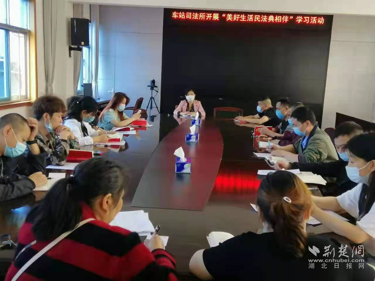 荆楚网(湖北日报网)讯(通讯员夏晓红、何素华)5月26日,孝南区书院街道法律顾问王巍走进书院工业园,为武汉通用大广医药有限公司20多名中层管理人员和职工代表进行了《民法典》知识的专题宣讲。