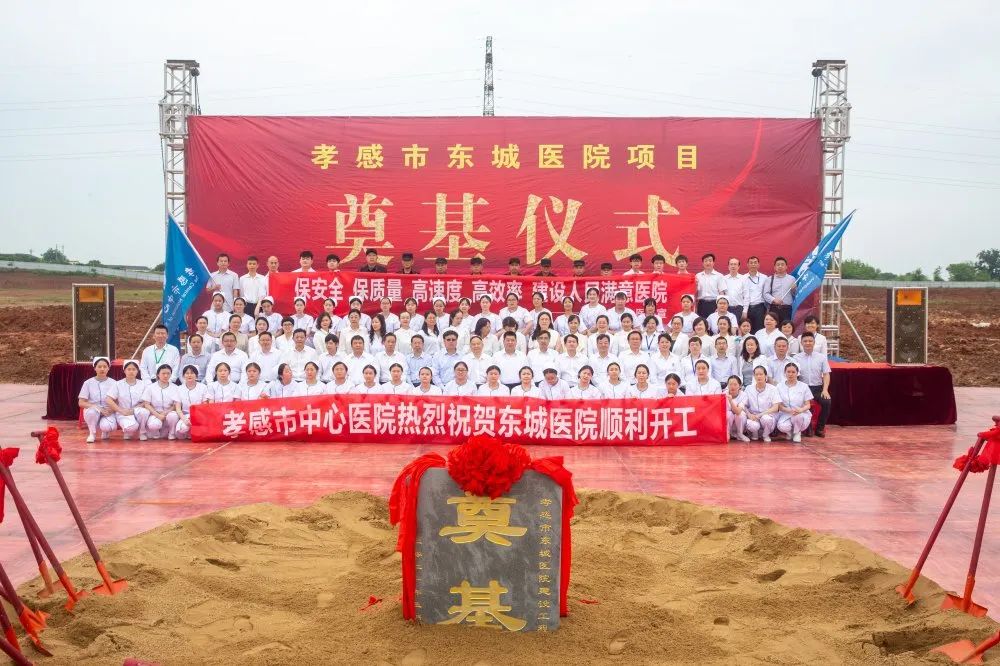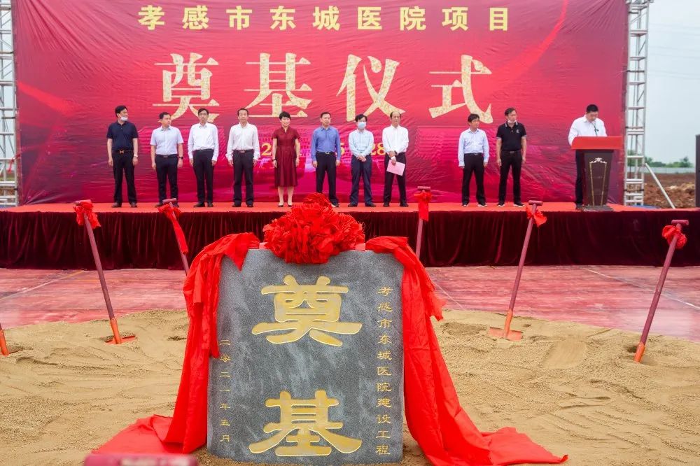 2021年5月28日上午9时许,孝感市东城医院项目开工奠基仪式隆重举行。市委常委、宣传部长、市委卫生健康工委书记张汉平,市政府副秘书长李志学,市高新区管委会主任黄晶,市卫健委党组书记、主任黄骏,市卫健委党组成员王志农,孝天办事处书记程福华、主任苏小波,以及西湖、高河、永爱社区有关负责同志,市中心医院全体班子成员、市康复医院、市妇幼保健院、市疾控中心、市中心血站、市综合监督局、市惠民医院、市结防所、市紧急救援中心主要负责同志,工程项目施工、设计、监理、造价等单位有关领导和员工代表出席奠基仪式,市中心医院党委书记王昆主持仪式,主席台领导及市中心医院全体班子成员为项目培土奠基。