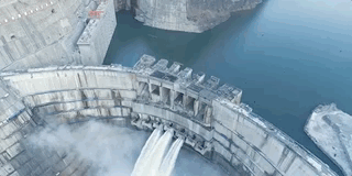 总台央视记者 宋菀:我们现在所在的位置是白鹤滩水电站的大坝上,这个大坝是混凝土双曲拱坝,整个坝高有289米。