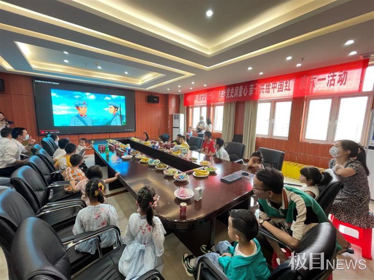 据了解,参加当天活动的小朋友们的年龄在2-12岁之间。当天的活动共分为三个环节,百年党史润童心环节,20多位小朋友共同观看以党史为题材的动漫短片《红军不怕远征难》;空中亲情连线环节,父母驻守省外在建项目的小朋友通过视频连线,与爸爸妈妈聊学习、聊生活;亲子共绘中国红环节,小朋友们与家长一起在纸上画下对家国美好的祝福。
