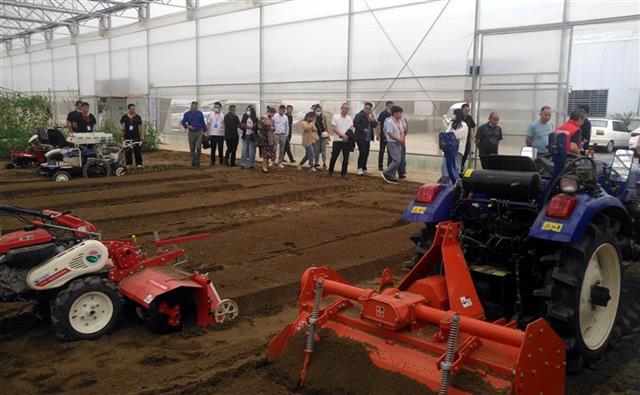 现场工作人员演示“5G+智能果蔬机械”作业,操作人员下达远程指令,旋耕、开沟、管理、收菜等命令。一台智能的无人驾驶果蔬机械迅速进入菜地,自动规划路线,前进、转弯,较麻利地完成了一块蔬菜地的耕整作业。工作人员还进行了蔬菜生产“耕、种、管、收”全程机械化技术演示,以及果园轨道运输机作业演示、农业物联网系统控制演示等。