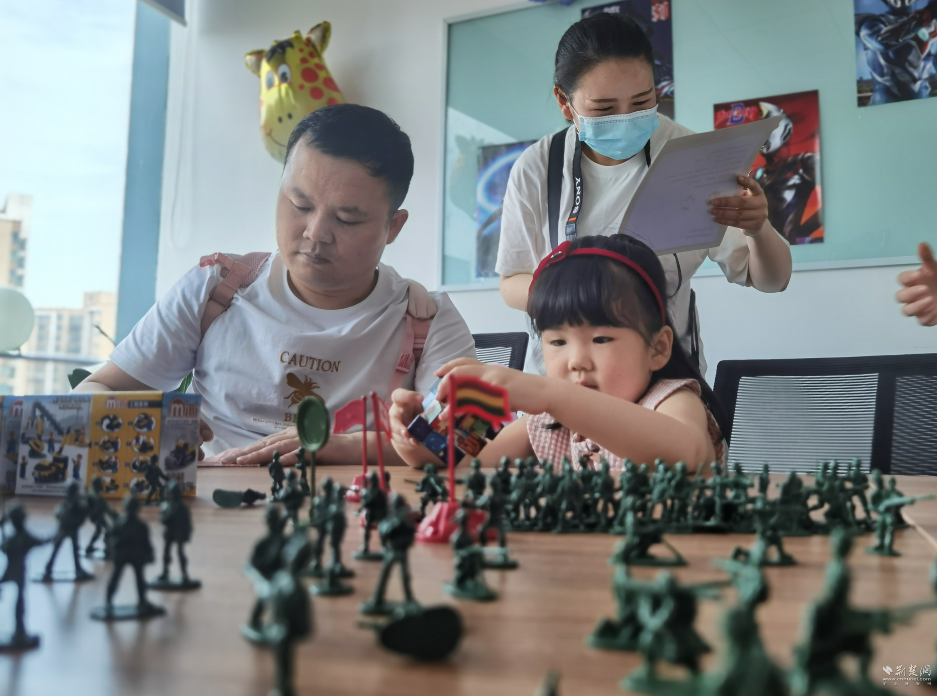 父母与孩子一起玩转童年游戏。记者张扬 摄