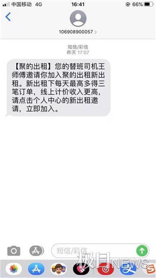 但从今年4月开始,王先生每隔两天就会收到一条“邀请加入聚的出租”的短信,“和别的广告、骚扰短信不一样,聚的发来的短信并没有‘取消订阅’或是‘取消发送’的选项,特别是最近一个月发的特别频繁。”提及此事,王先生十分烦恼。
