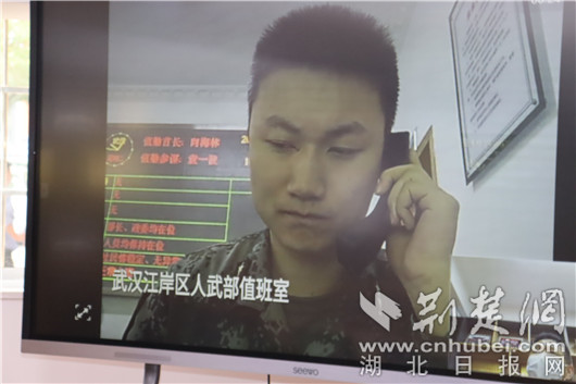 征兵工作站连线武汉江岸区人武部值班室。记者 黄康摄